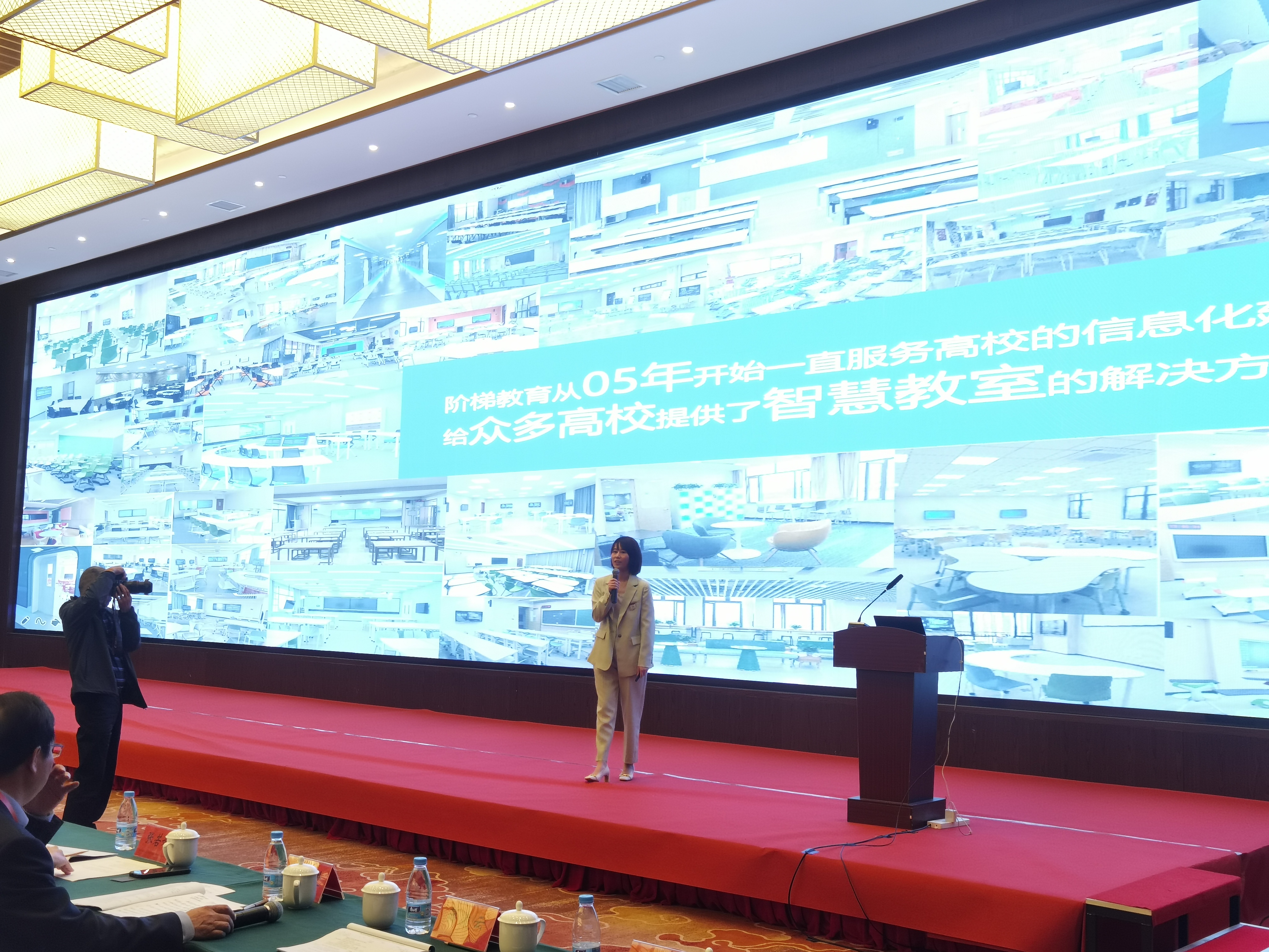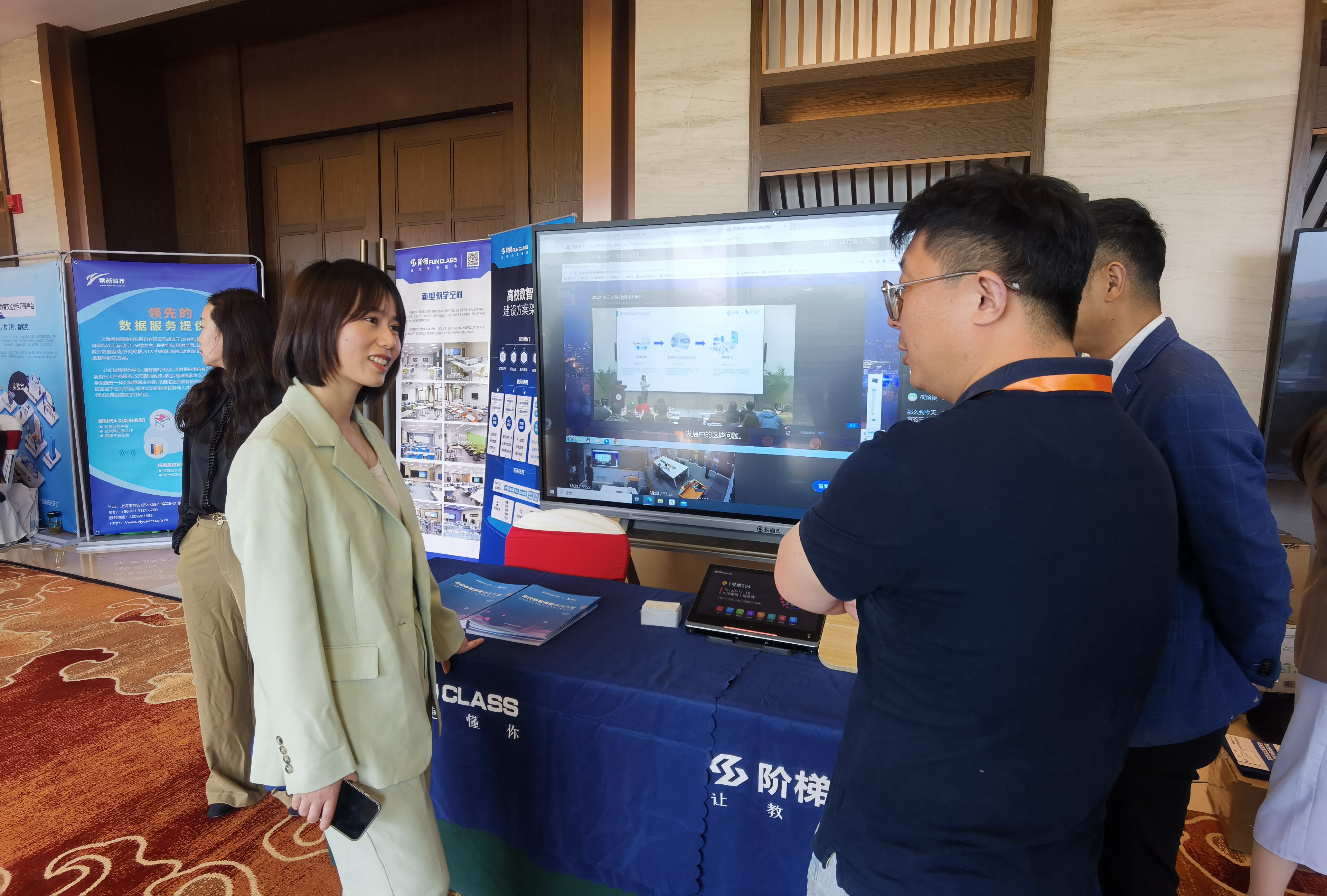 在大會企業(yè)布展的產(chǎn)品介紹環(huán)節(jié)中,呂總為各校領(lǐng)導(dǎo)演示了數(shù)智課堂平臺的各項功能,并介紹了數(shù)智課堂的應(yīng)用優(yōu)勢,讓校領(lǐng)導(dǎo)們對“平臺+教育”服務(wù)模式有了更深入的了解,也期待與階梯的合作共同推動數(shù)字教育的蓬勃發(fā)展。