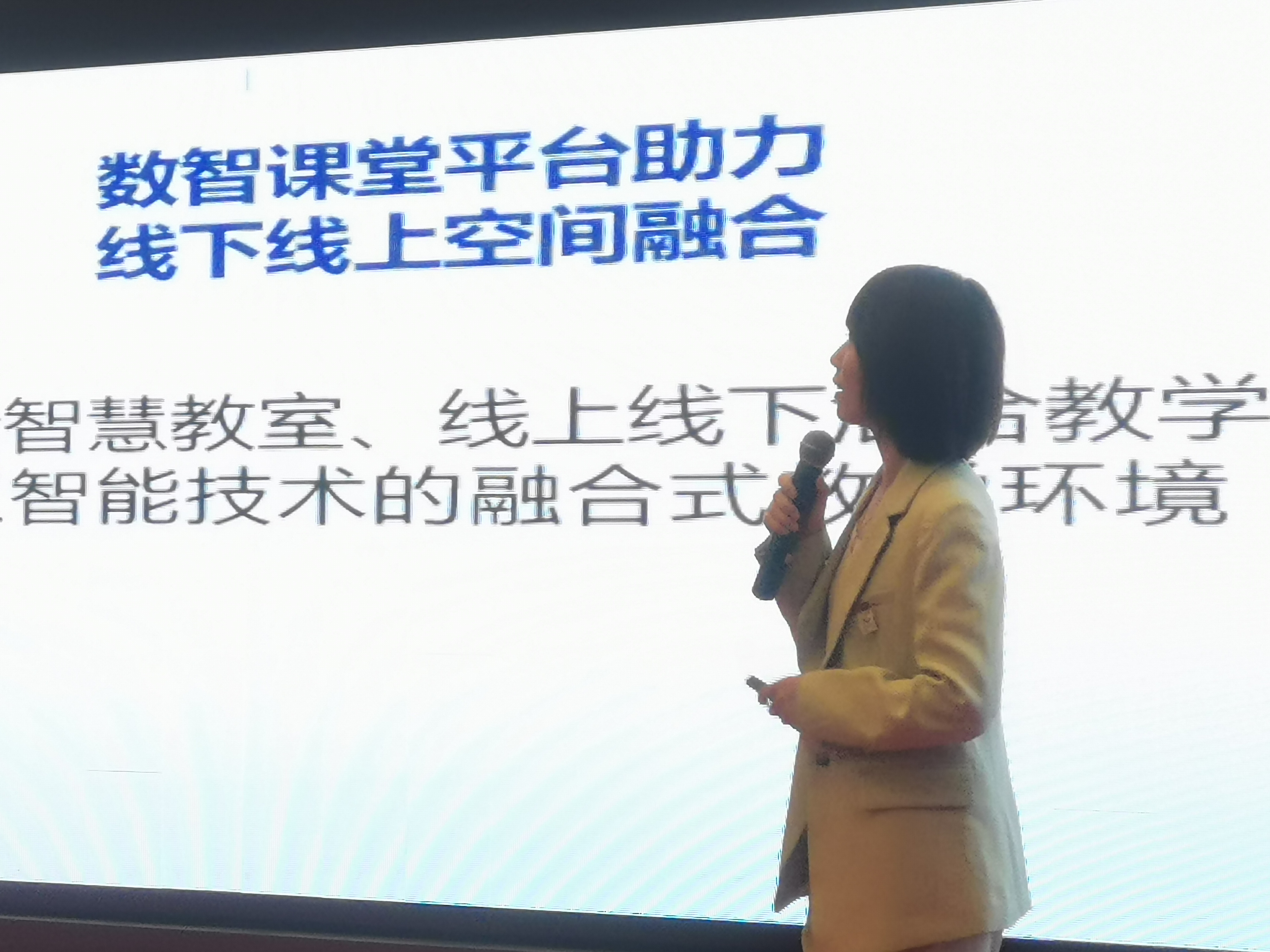 寧波階梯教育科技有限公司副總經(jīng)理呂美玲女士在高校數(shù)智信息化建設(shè)的主題匯報中強(qiáng)調(diào)了“互聯(lián)網(wǎng)+教育”這種新型信息化教育模式的發(fā)展趨勢,并提出了有關(guān)階梯教育與釘釘共同研發(fā)的數(shù)智課堂產(chǎn)品為高校信息化教育助力的整體解決方案。數(shù)智課堂做為互聯(lián)網(wǎng)端的第三課堂,能打通線下到線上的空間壁壘,提供線下到線上的流媒體工具,并輔助AI的智能應(yīng)用,探索線上的教學(xué)場景應(yīng)用,助力多維度的數(shù)字化改革,打造了實時在線的教室。基于釘釘搭建的教學(xué)場景群,更是成為師生自運(yùn)營的重要陣地,最終實現(xiàn)教學(xué)在群、社交在群、協(xié)同在群、數(shù)據(jù)在群,助力學(xué)校線上線下一體化教學(xué)。